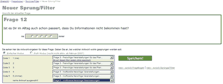 (komplexe Verzweigungs-logik und individueller Verlauf durch den Fragebogen)