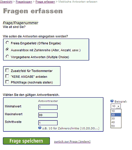 Zahlenwerte als Eingabe, Drop-Down oder Auswahl